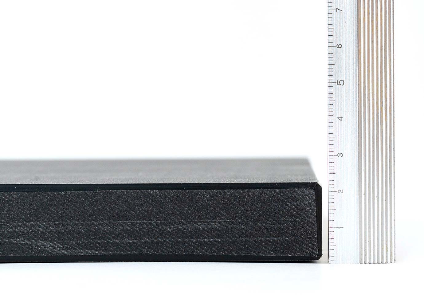 まな板の厚みは2cm。程よい重さもあいまって、食材を切る時にずれにくく、動きづらいので安定感に繋がります。また従来のプラスチック素材に比べると粘性があり反りにくく、長く愛用できるまな板です。