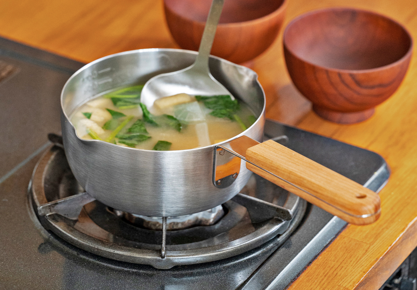 沸騰までが早い雪平鍋は、さっと仕立てる味噌汁や色よく茹でた野菜のおひたしなど、手早く火を通して仕上げることの多い和食にぴったり。熱が均等に回るので煮物も短時間で完成し、きんぴらなどの炒め煮にも向いています。