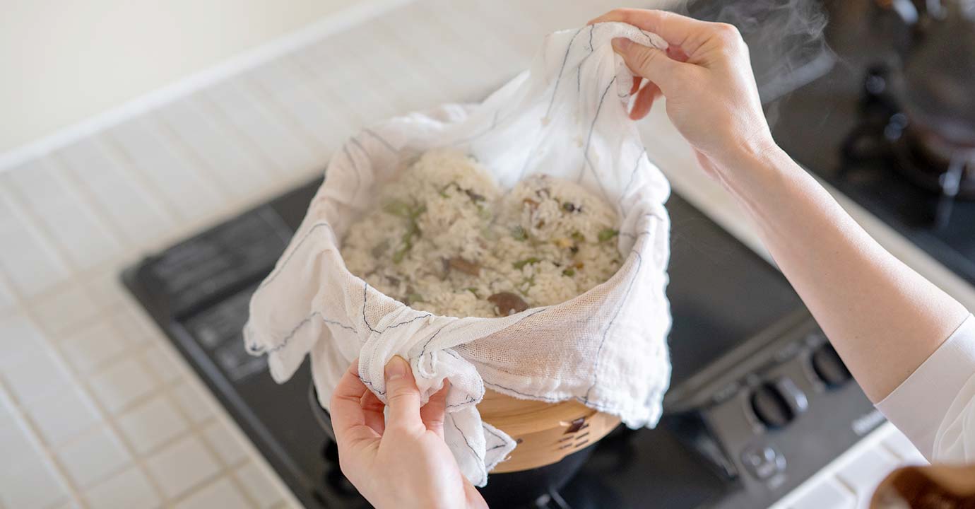 保湿性があり、酢飯を美味しく保ちます。目が粗いのでおこわを蒸すときにお米の粒が付きにくいのも嬉しいところ。