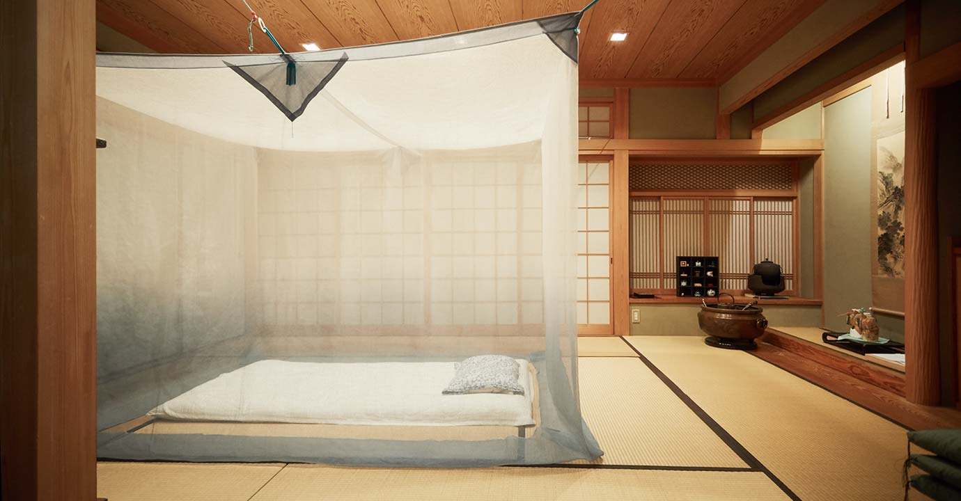 - 洗濯の際は中性洗剤をご使用ください。固形洗剤をご使用の場合は、蚊帳生地の目に詰まり残留する場合がございますのでご注意ください。
