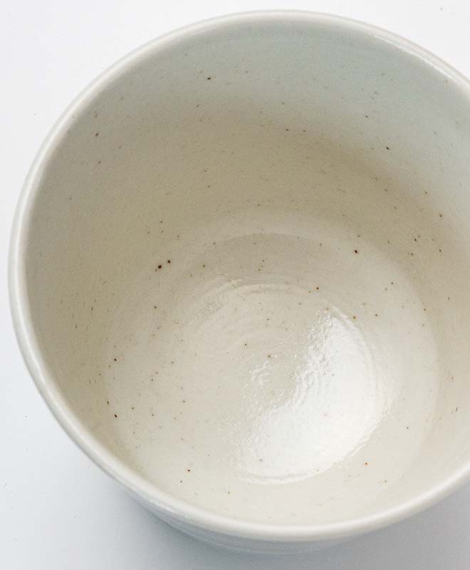 鉄分が含まれる陶石を原料に使用している為、器の表面に小さな茶色や黒の斑点がある場合がございます。※特に器の内側によく見られます