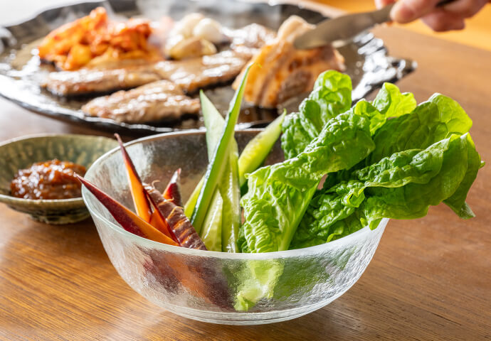 ざっくり切った野菜を盛るのには中鉢が重宝します。焼肉の食卓に添えれば、涼やかさを感じて食も進みそう。