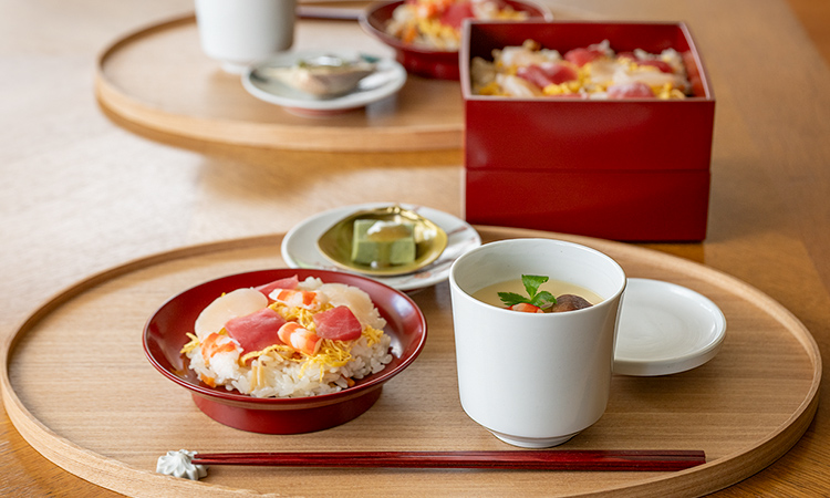 ひな祭りのちらし寿司に、手づくりの茶碗蒸しを添えて。蓋付碗があれば、お祝いの御膳がより豊かになります。