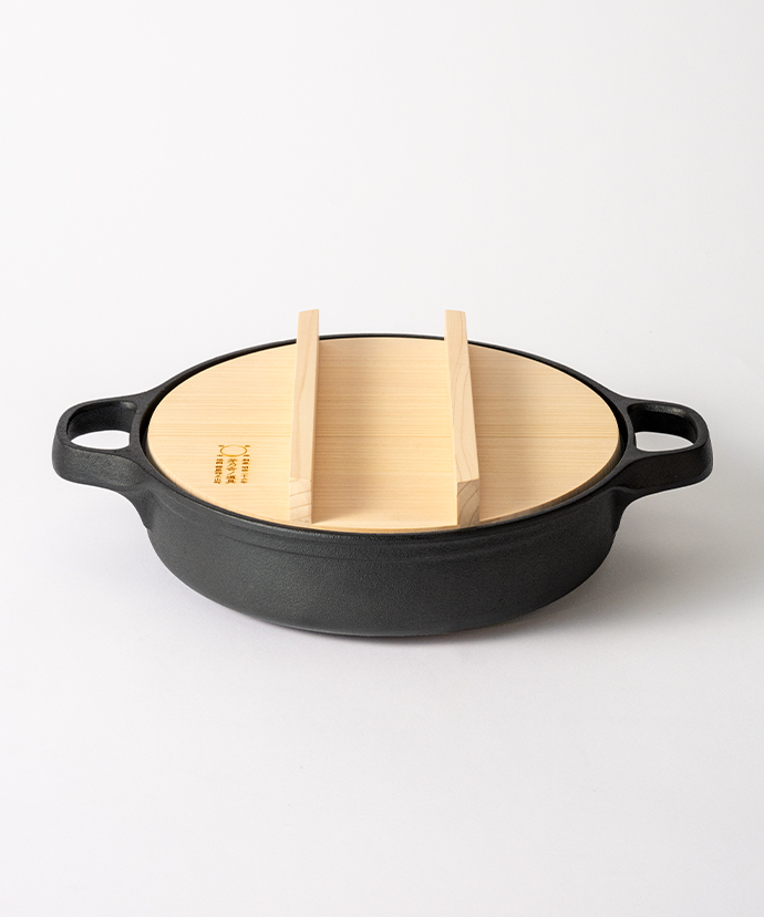 ごちそうの定番・すき焼きに加えて、日々の料理もおいしくできる鉄鍋があったなら。そんな想いから生まれた、IH調理器対応のすき焼き鍋です。岩手県奥川市の南部鉄器工房の職人技がいきています。