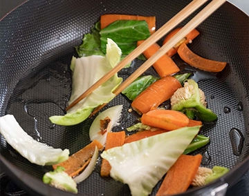 3. 多めの油で野菜くずを炒める。