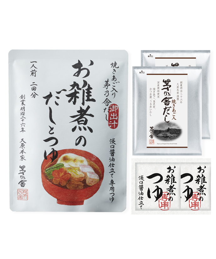 【だしパック】風味原料(かつお節、いわし煮干しエキスパウダー、焼きあご、うるめいわし節、昆布)、でん粉分解物、酵母エキス、食塩、粉末しょうゆ、発酵調味料、(一部に小麦・大豆を含む)