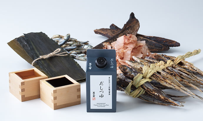 鰹節や焼きあご、うるめいわし、真昆布を用いた「茅乃舎だし」をベースに独自の分量でおだしをとり、うまみの基礎を備えた香り高いつゆに仕上げました。天然醸造丸大豆醤油や本みりんも深みをもたらします。
