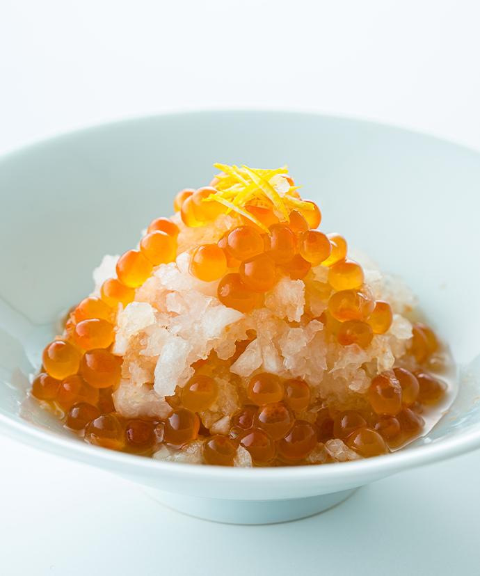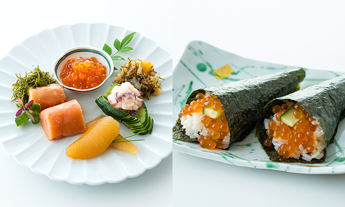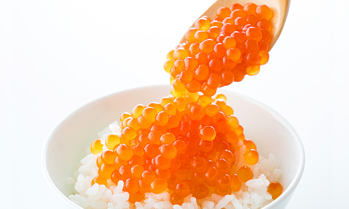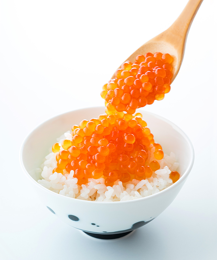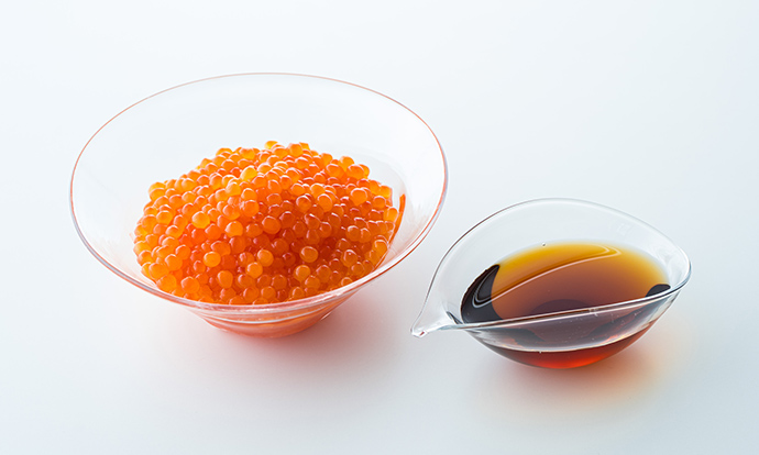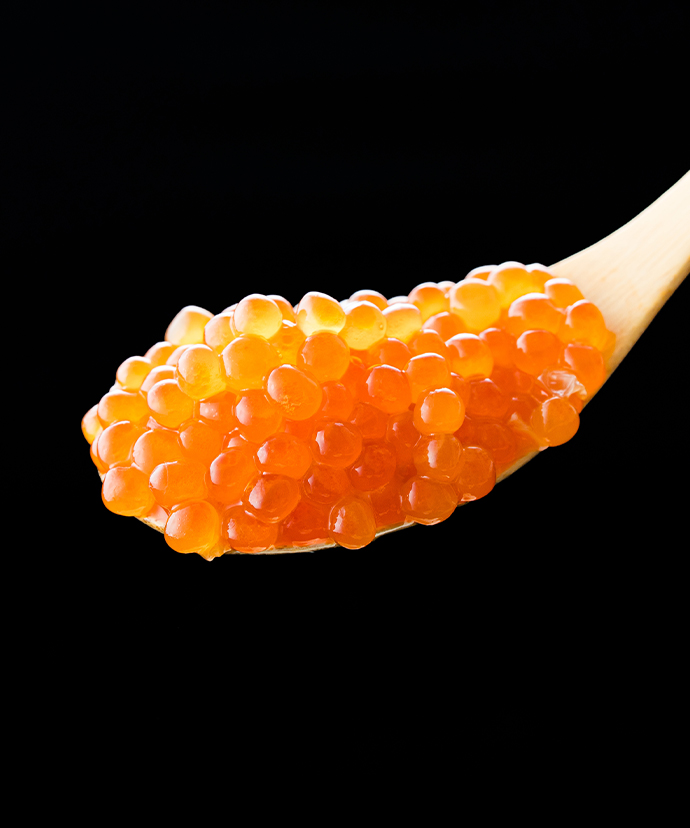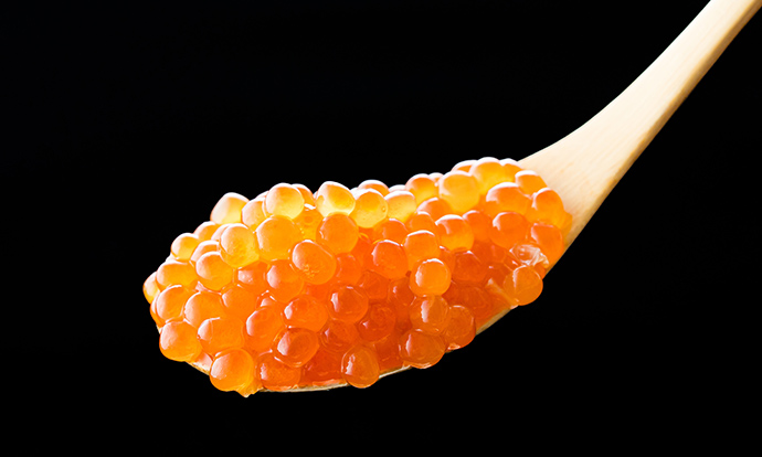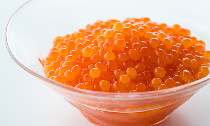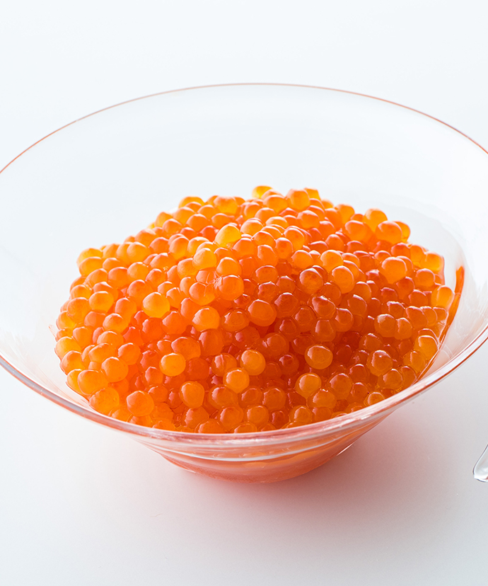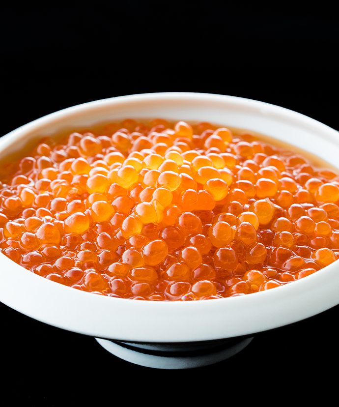 鮮度の高い完熟いくらは皮が薄く、ほどよい食感で口どけもよく、目にも透き通るような美しさ。
