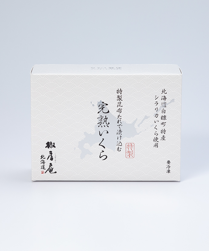 2種の北海道産昆布(日高・棹前)とかつおを合わせた椒房庵の特製昆布たれに漬け込んで作る自家製『いくら漬け』です。お召し上がりの前日に、ご自身で漬けていただくことで、ほどよい漬け加減の繊細な味わいをお楽しみいただけます。