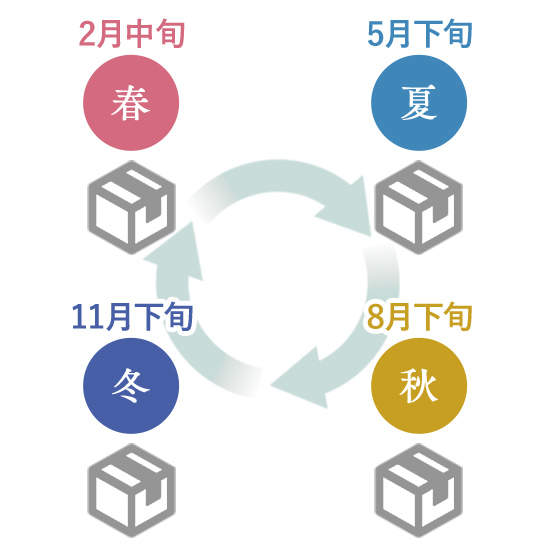 人気の季節限定品は、「買おうと思っていたら売り切れていた…」というお声をいただくこともございます。「季節のおすすめ便」をお申込みいただいたお客様には、確実にお届けいたします。