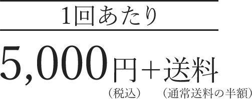 お届けごとのお支払いです。1回あたりのお支払い金額は、5,000円(税込)+お住まいの地域の送料の半額となります。お支払い方法は、クレジットカード決済、お振込み、または代引きがご利用いただけます。