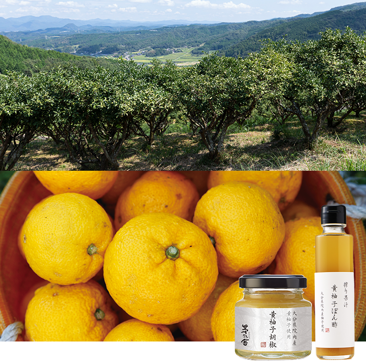 甘みを含んだ完熟の黄柚子。自生に近い環境で育てられた希少な大分県院内産の「ハンザキ柚子」です。