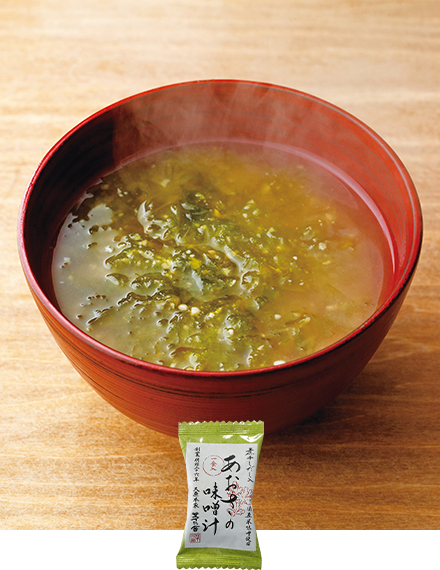 あおさをたっぷりと贅沢に使用。「煮干しだし」と合わせて 磯の香り豊かに仕上げました。お酒を飲んだ次の日の朝にもおすすめしたい一杯です。