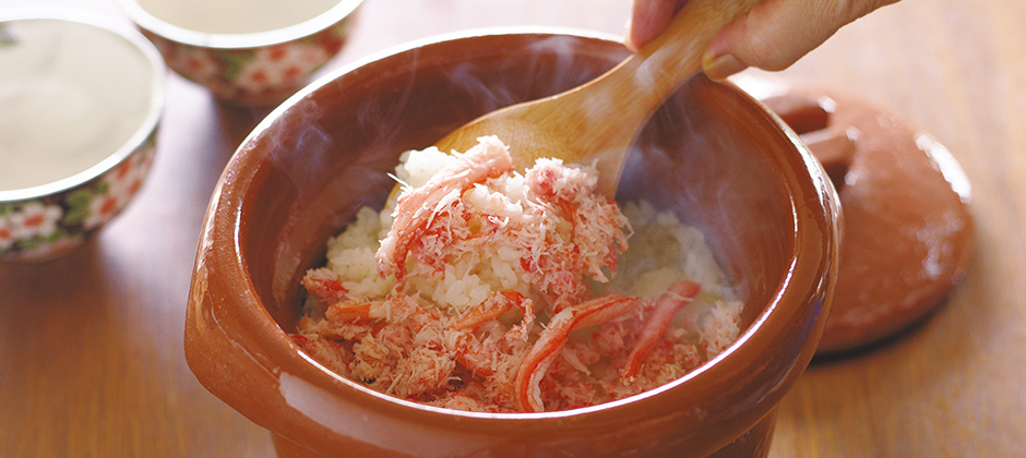 華やかにしつらえたい年末年始の食卓にぴったりなのが、だしで炊き上げる「贅沢かにめし」です。ぜひ、特別なご贈答品としてご用命くださいませ。