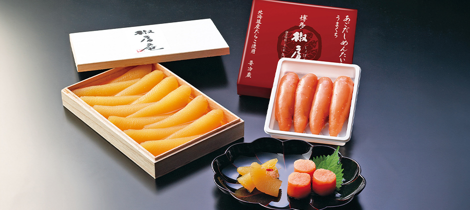午年の絵柄の「御年賀贈答箱」は新春のご挨拶におすすめ。木箱入りのめんたいこや数の子は、お正月を贅沢に彩ります。
