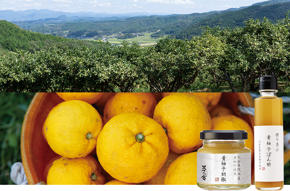 甘みを含んだ完熟の黄柚子。自生に近い環境で育てられた希少な大分県院内産の「ハンザキ柚子」です。
