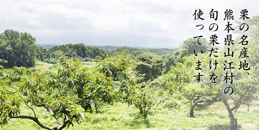 熊本県は全国2位の生産量を誇る栗の産地。その中でも知る人ぞ知る和栗の産地である山江村の栗を使用しています。盆地気候で朝晩の寒暖差が大きく、甘みの強い栗が育つのが特徴です。
